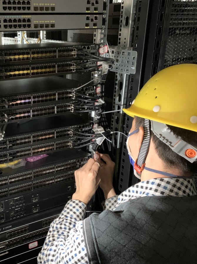 区别于传统的医疗IT场景,火神山医院实施项目工期非常紧张,机房基建、网络调试同步进行。新华三快速、高效地做了大量准备工作,包括设备提前分类、硬件提前组装、提前加电检测,端口规划并提前预配置,光模块提前插入等,确保最终设备交付施工时“即插即用”。