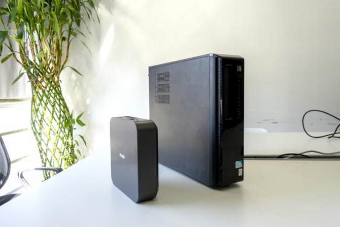 说到外观,“小巧”往往是大家看到产品的第一印象,RG-CT7800的机身整机体积仅为2.4L,相比传统的PC主机,RG-CT7800更像是一个电视机顶盒。