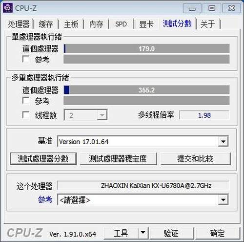 此外,RG-CT7800同样能够完美适配Windows操作系统,为了进一步了解产品的性能,我们通过测试软件“CPU-Z”对产品的性能进行了简单测试,其测试结果如下所示:
