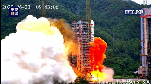 2020年6月23日上午9时43分,搭载北斗卫星的长征三号乙运载火箭,在西昌卫星发射中心点火发射,北斗系统第五十五颗导航卫星,暨北斗三号最后一颗全球组网卫星发射成功,北斗全球系统组网完成,北斗卫星导航系统建设历经三十多年探索实践,三代北斗人持续奋斗,迄今终于完成,意味着中国北斗系统“三步走”战略全部实现,标志着中国从航天大国迈入航天强国之列。