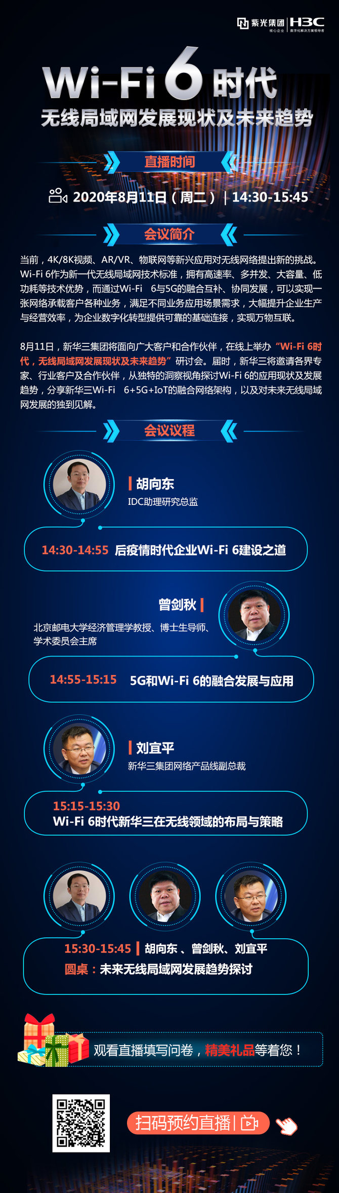 8月11日,新华三集团将面向广大客户和合作伙伴,在线上举办“Wi-Fi 6时代,无线局域网发展现状及未来趋势”研讨会。届时,新华三将邀请各界专家、行业客户及合作伙伴,从独特的洞察视角探讨Wi-Fi 6的应用现状及发展趋势,分享新华三Wi-Fi 6+5G+IoT的融合网络架构,以及对未来无线局域网发展的独到见解。