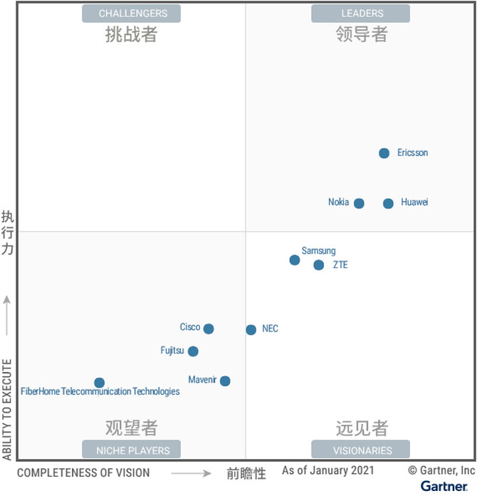 ▲5G网络基础设施魔力象限