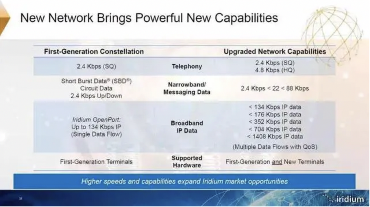 铱星一代和二代的速率参数对比