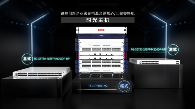 作为场景化创新的专家,锐捷网络深入制造业内部生产、仓储、办公等场景和面临的网络问题,针对性地推出了光电一体化创新产品——框式时光主机RG-S7808C-V2、盒式时光主机RG-S5750-DP系列。