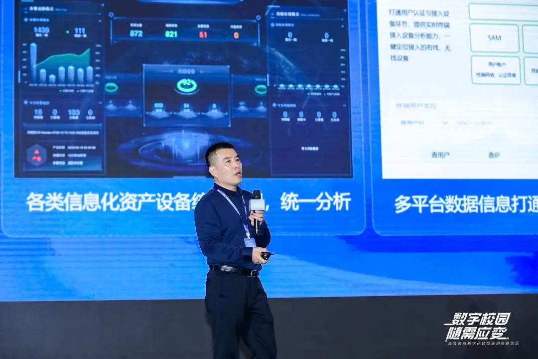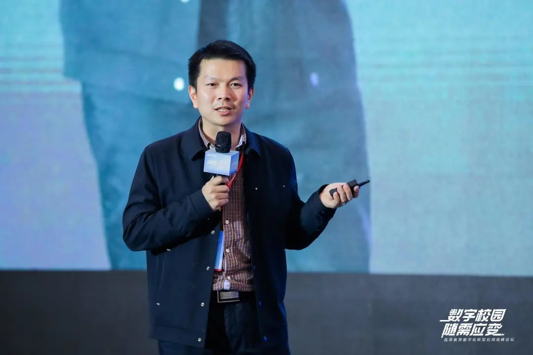 锐捷网络高职教行业部总经理黄镇做了《数字校园,随需应变》的主题报告。自锐捷进入教育信息化领域的二十余年来,服务数字化转型的产品方案依据时代的需求、校园业务的目标不断进化升级。当前的高教数字化转型当中仍然存在一些问题:一是基础网络设施可能还不够稳定;二是到今天为止数据鸿沟依然存在,数据质量难以支撑决策;三是信息化和教育教学中仍然存在许多个性化场景难以覆盖;四是师生间的信息化素养,在地区间、校校间差异大。未来,锐捷将持续通过基础网络、教育教学、管理服务三个层次的不同创新方案,为数字时代不断升级的高等教育发展需求服务。