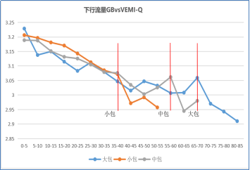 以VEMI-Q=3.0为基准进行分析,大中小包不同场景下,基于感知忙时流量基线相较集团标准拐点提前到来。小包为40GB、中包60GB、大包70GB。