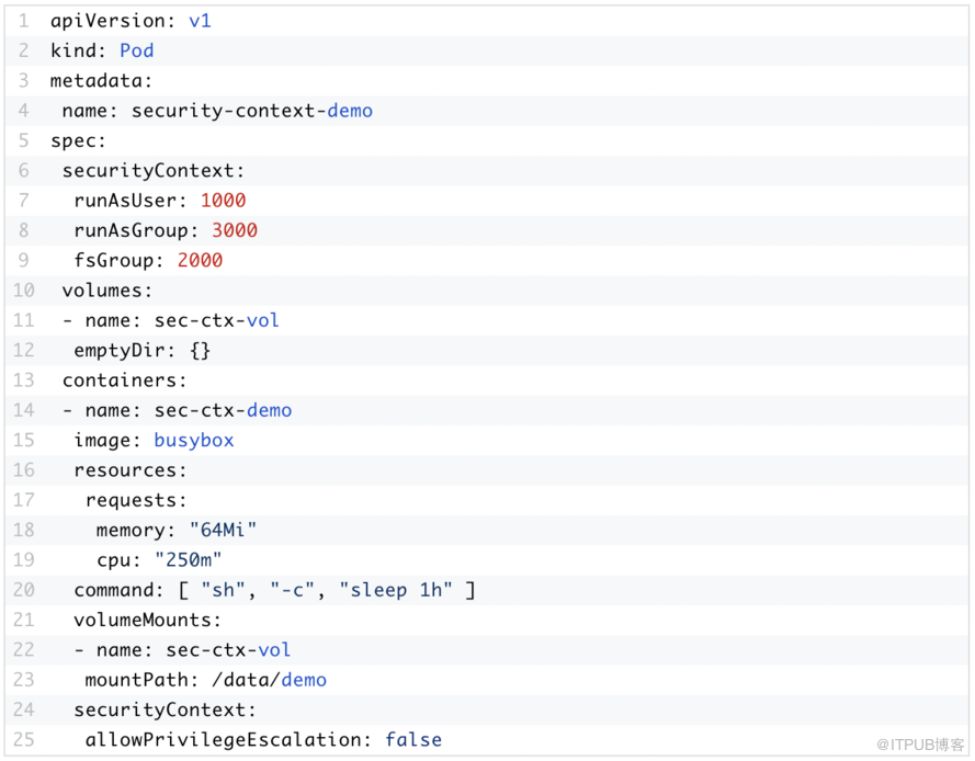 以下是使用名为pod.yaml的规范文件示例,该文件存在生产就绪性和安全问题: