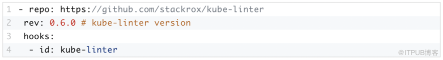 此配置设置了kube-linter hook,该钩子使用go get在本地克隆、构建和安装KubeLinter。