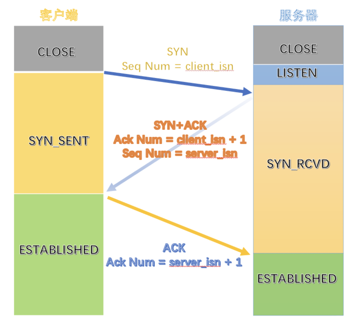1、建立连接之前服务器和客户端的状态都为CLOSED。