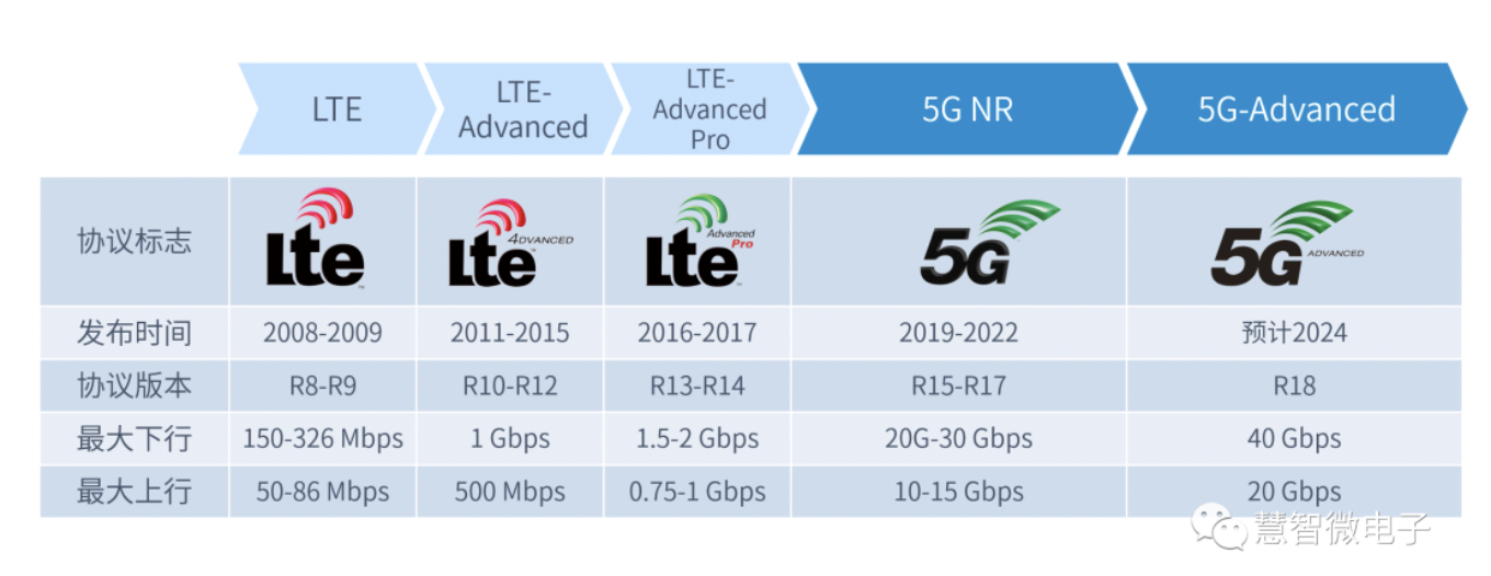 为了满足移动通信的不断发展,自3G时代起,协议发布之后不再是一成不变,而是不断演进。例如WCDMA协议在后期迭代出现HSPA(High Speed Packet Access),以提供更调整的上下行速率。这一做法在4G时代得到了充分使用。