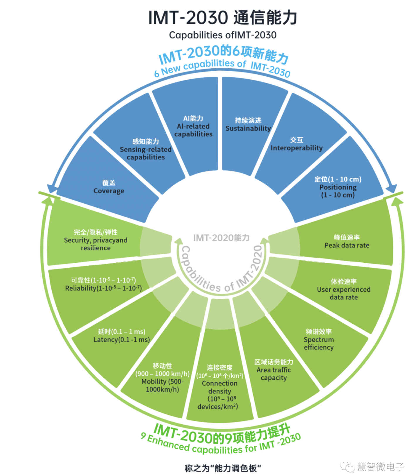 ITU将6G的能力称为“6G能力调色板”,9个能力提升与6大能力增强使6G应用更值得期待,多姿多彩。