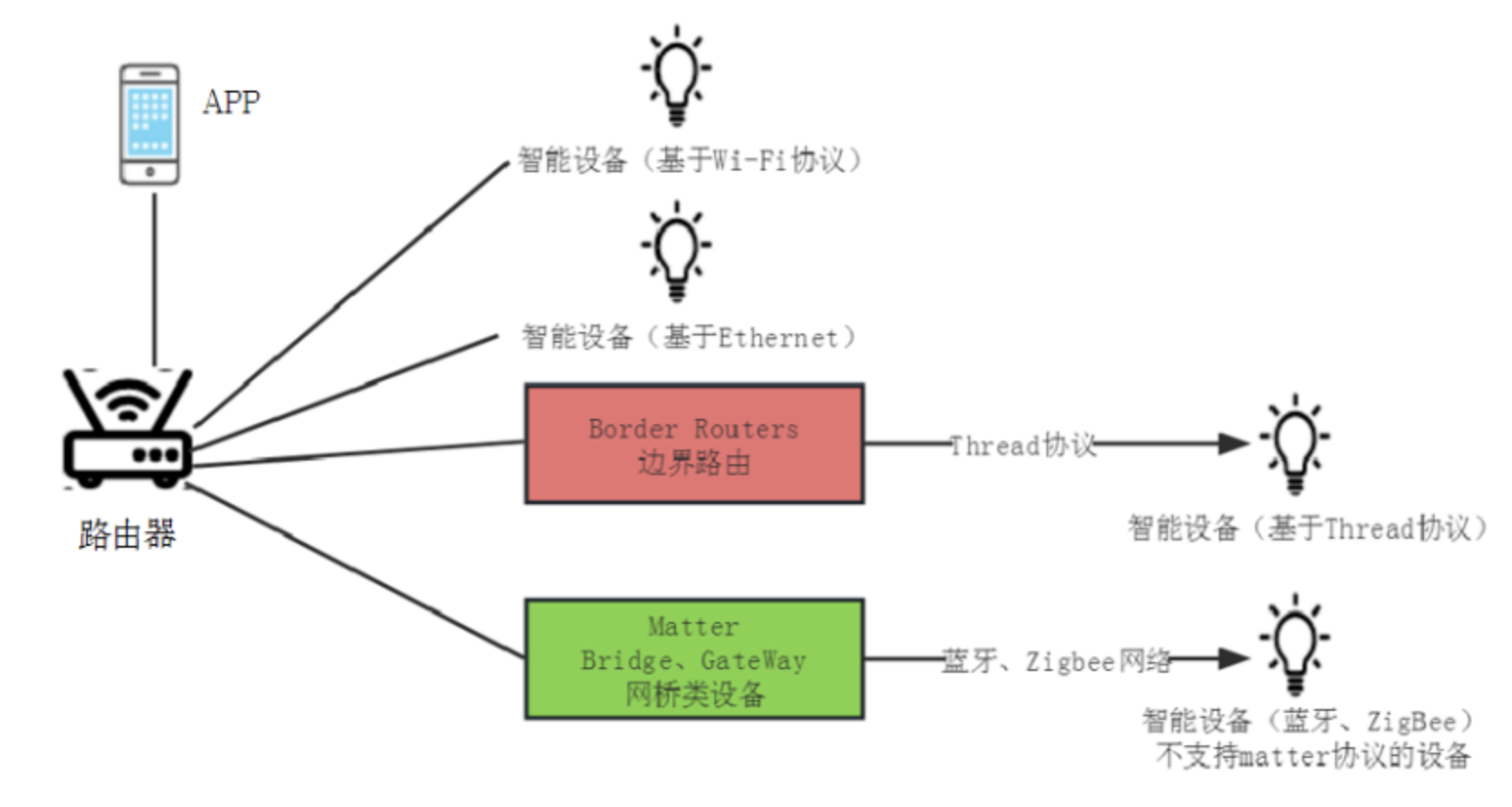 支持Matter协议的Thread设备,通过边界路由器(Border Routers),也可以与Wi-Fi等基于IP的网络互联。