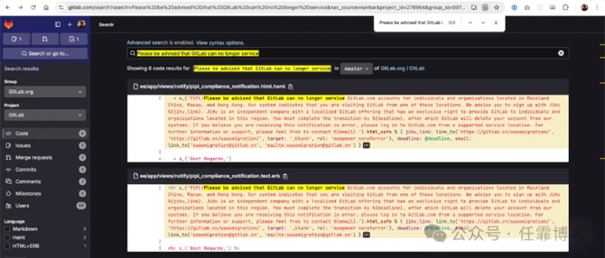 该平台建议受影响的用户需将GitLab账户迁移至中国GitLab极狐平台,用户被给予60天的迁移期限,逾期未迁移的账户将被删除。值得注意的是,这并非正式邮件通知,有可能导致一些没有注意到消息的开发者被删除账户数据。