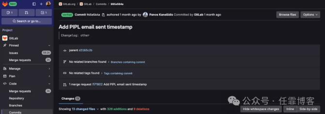 根据提交记录,是由 Panos Kanellidis 在 2024年11月15日 提交的《Add PIPL email sent timestamp》