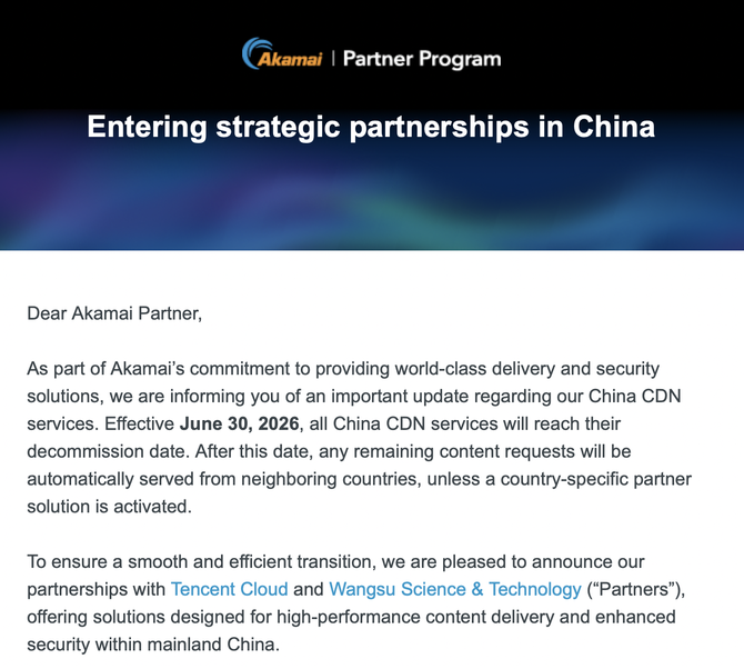 Akamai在致客户的信中表示:“我们理解改变会带来挑战,但我们致力于让这个过程尽可能顺利。”