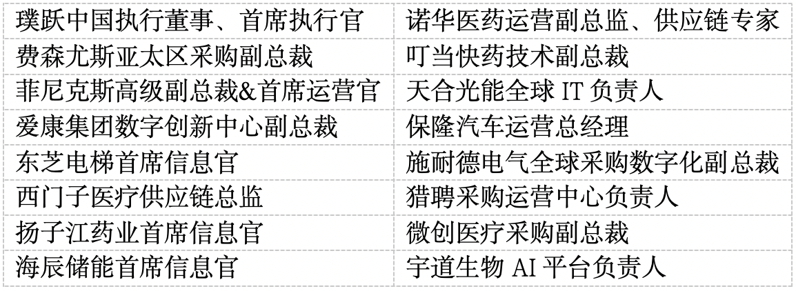 50+行业领袖深度分享,覆盖制造、医疗、新能源、汽车等20+行业,演讲嘉宾包括: