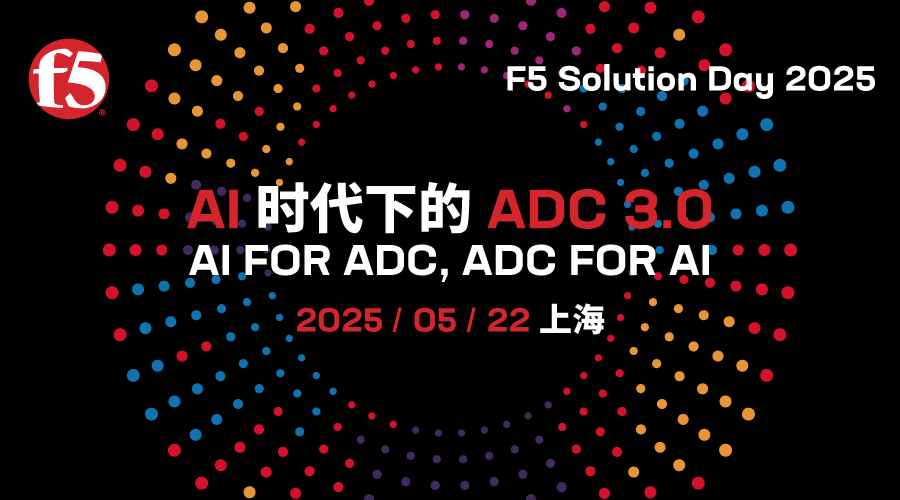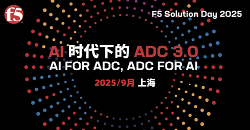 2025年9月即将在上海举办的F5 Solution Day 2025将为您揭晓答案!本次大会以“AI时代下的ADC 3.0”为主题,汇聚全球技术专家、行业领袖及生态合作伙伴,共同探讨AI与ADC(应用交付控制器)融合的创新趋势,分享最新的技术成果和实践经验,助力企业把握AI时代的机遇与挑战。