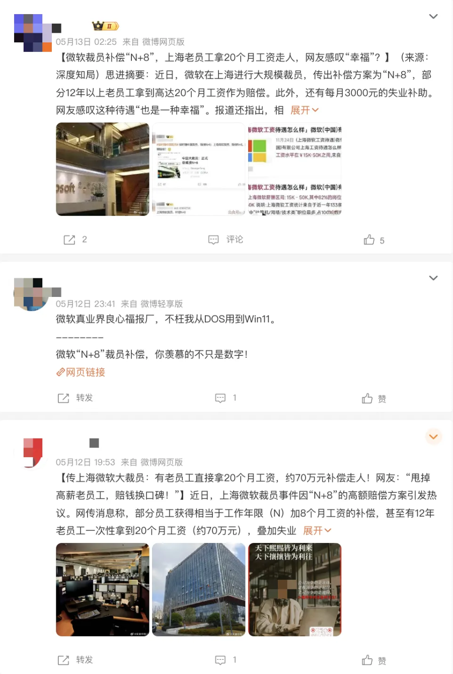 近期有网友爆料“上海微软大裁员”,网传消息称“部分员工获得 N+8 赔偿”、“某些老员工直接拿20个月的工资走人”。