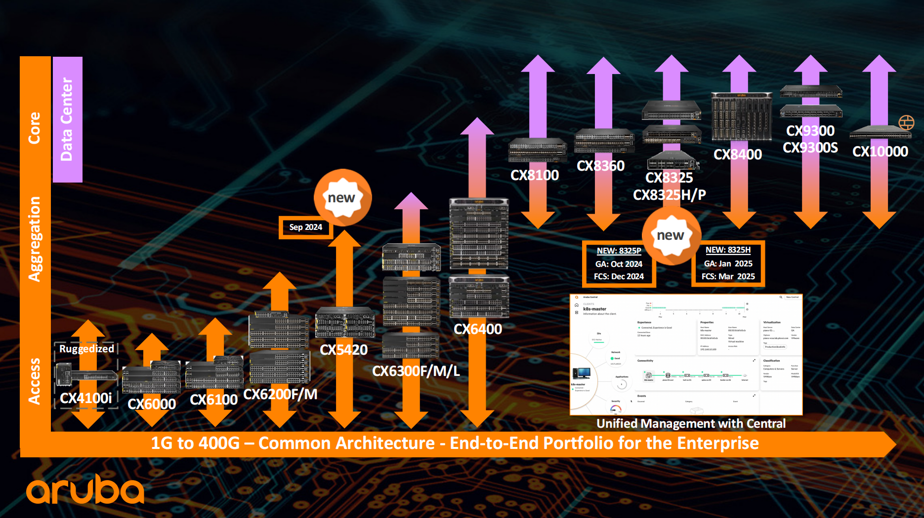 聚焦有线网络领域,首款Aruba CX交换机CX 8400于2017年发布。历经7年多的沉淀,Aruba CX交换机已发展为一个完整且全面的产品系列,广泛适用于园区网、数据中心等多样化应用场景,速率覆盖从千兆到400G的各个层级,可以满足全方位的网络需求。