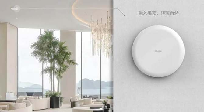 射灯式设计,解决了在酒店、宴会厅等场景中,AP安装为了美观,常会隐藏安装于空调出风口内或藏于吊顶之上,导致AP的信号覆盖效果因遮挡而减弱,影响用户连接使用的问题。