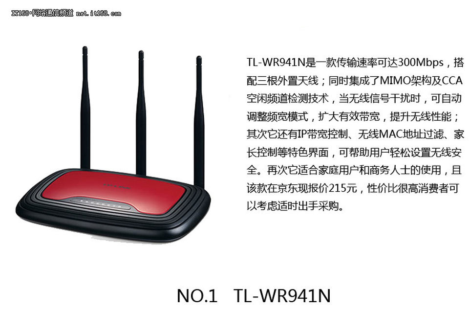 TL-WR941N自动调整频宽模式,扩大有效带宽,提升无线性能。该款在京东现报价215元,消费者可以考虑适时出手采购。